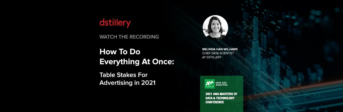 During the ANA Masters of Data & Technology Conference, Melinda Han Williams, Chief Data Scientist at Dstillery, discussed how you can use your portfolio of targeting solutions to both prepare for the future and optimize for the best performance today. Melinda also shared Dstillery’s post-cookie targeting solution, ID-free Custom AI, a new privacy-by-design behavioral targeting solution that performs on par with cookies to reach users without an identifier.