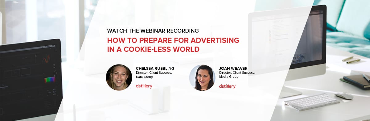 Learn How To Prepare for Advertising In A Cookie-Less World during our webinar, presented by Dstillery's Directors of Client Success, Chelsea Ruebling and Joan Weaver.